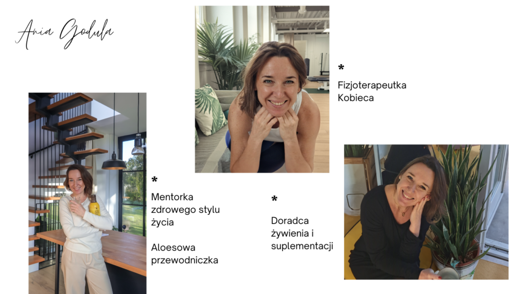 Mam na imię Ania i z ogromną pasją wspieram kobiety na różnych etapach ich życia jako fizjoterapeutka uroginekologiczna, instruktorka ćwiczeń dna miednicy i masażystka kobiet w ciąży oraz połogu. Prowadzę również terapie z zakresu fizjoestetyki, doradztwa żywieniowego i suplementacji – wszystko po to, byś mogła poczuć się dobrze w swoim ciele.
